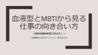 セミナー血液型とMBTIから見る仕事の向き合い方(2025/12/23) みなさん日常生活のさまざまな瞬間から、「私○型だから。」「何々さん○型ぽい~」のような会話を一度は耳にしたことありませんか?また、自分で”自分のこういうところが○型ぽいな”と感じたことがある人も少なくないはずです。さらに最近では血液型よりも... 2025.12.24セミナー